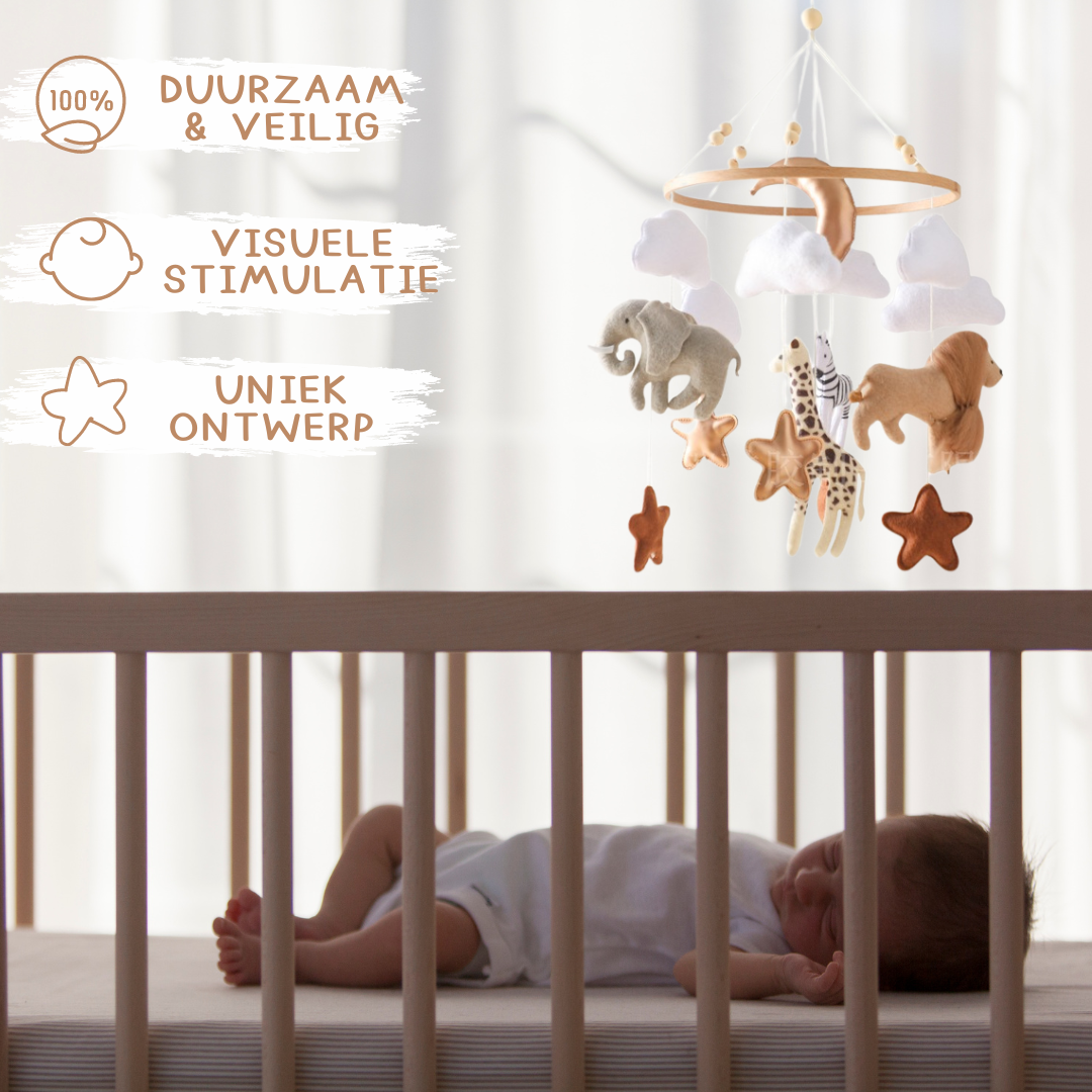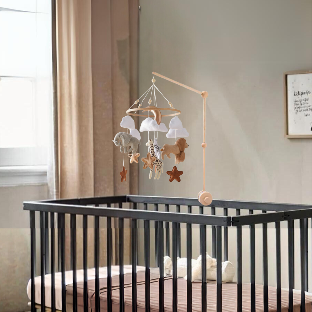 Safari Animal Theme: Treat your baby to a menagerie of safari animals, including lions, giraffes, elephants, zebras and more. Each animal is intricately handcrafted from high-quality felt, ensuring durability and safety for your little one.
