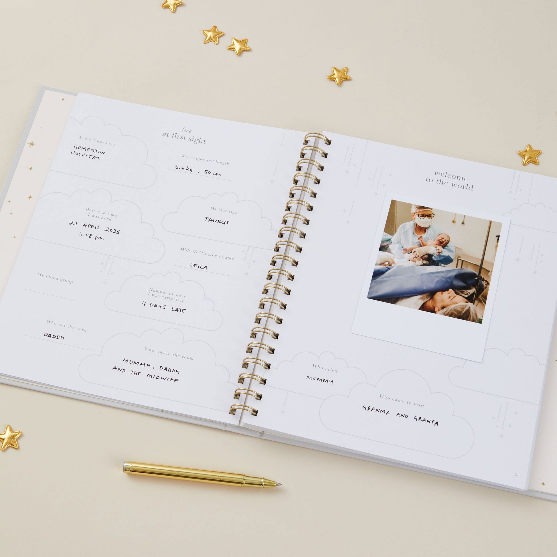There is plenty of space to write down your baby's first words, steps and tantrums, and enough prompted pages so you’re not stuck for ideas for things to write, whilst leaving enough room for you to add your own content.