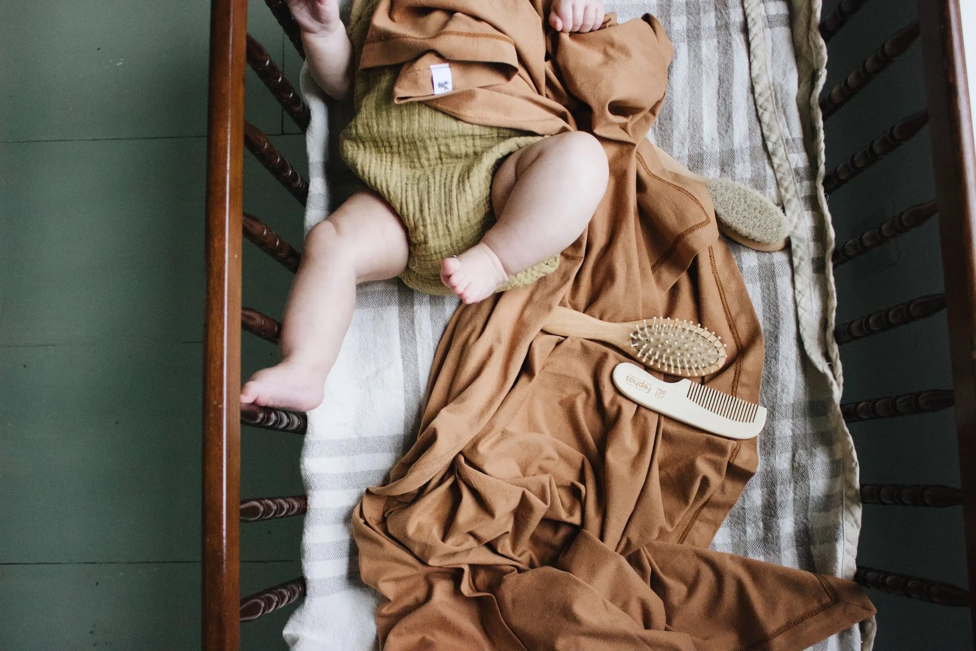 A massage wooden bristle brush that stimulates the scalp and increases circulation while relaxing your baby.